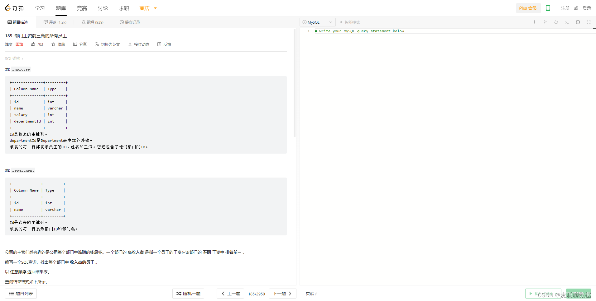 这个阶段的关键在于熟练掌握SQL语言规则。实践练习极为关键。无需自己搭建环境,可以直接访问诸如牛客和力扣等在线刷题平台。在牛客网上,刷题是免费的。这里无需下载数据库和工具,只需在网页上的SQL编辑区域答题即可。若一个人能在10道题中答对8道,那基本上就可以说已经入门SQL了。