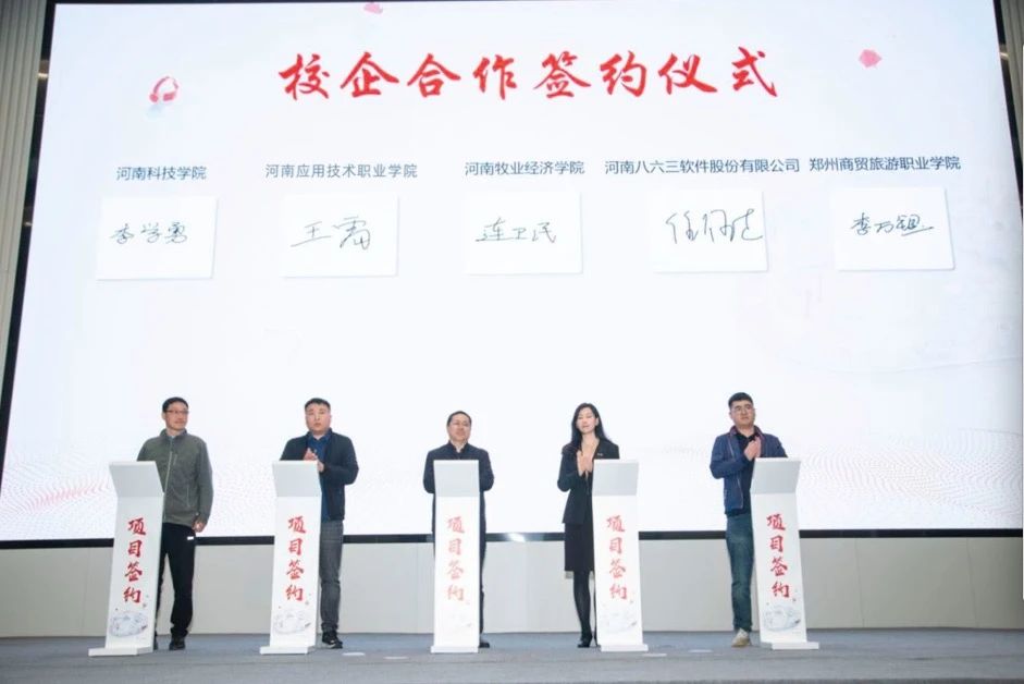 在活动过程中,八六三软件与多所高校达成了合作共识,并举办了授牌典礼。郑州工业应用技术学院和郑州信息科技职业学院等高校均加入了这一合作。此类合作模式对于高校培育符合企业需求的专业人才起到了积极推动作用。