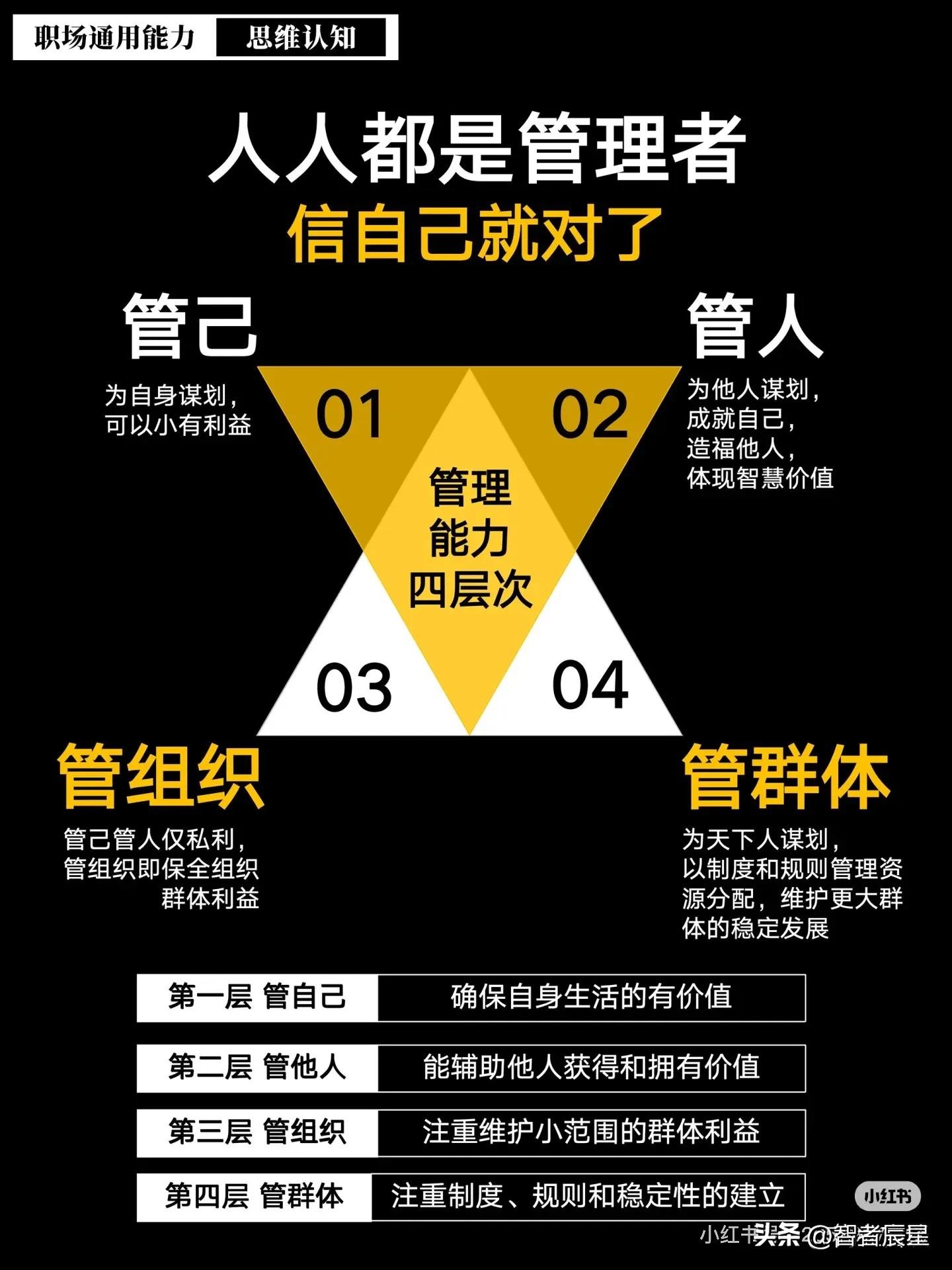 在激烈的市场竞争中,管理水平对团队和组织能否取得胜利极为关键。要成为一名杰出的管理者,需对管理的四个方面有透彻的理解,如此才能更精确地定位自己,并持续追求更高的管理层次。