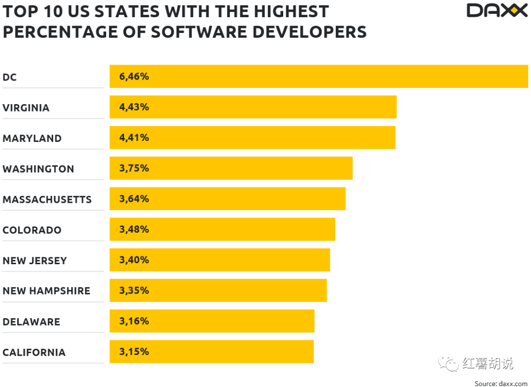 Data USA和DQYDJ都参考了美国人口普查局的数据,但分析结果存在差异。这或许是因为定义上的不同,不同机构对软件开发人员的界定标准不一,有的包括与代码相关的多种职业,有的则只针对纯软件开发人员。