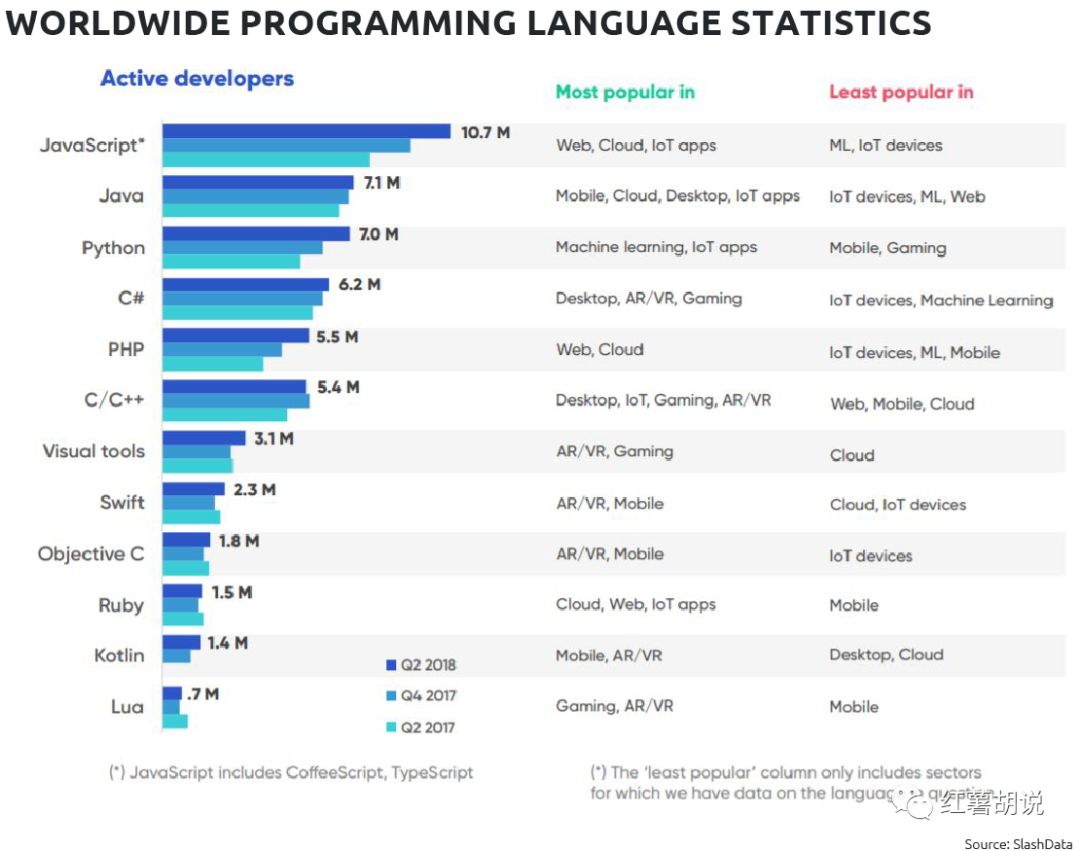 埃文斯数据公司2019年的数据显示,2018年全球软件工程师人数已达到2300万。预计到2019年底,这一数字将增至2640万,而到2023年,人数可能进一步上升至2770万。IDC的数据也指出,2018年全球软件工程师有2230万,而2014年这一数字仅为1850万。尽管各机构数据略有出入,但一个明显的趋势是软件工程师数量的稳步增长。