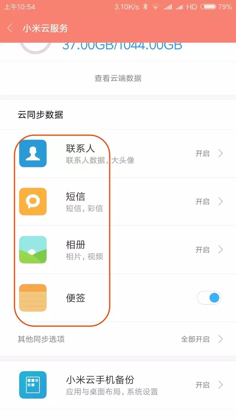 小米手机用户可享受云端数据备份服务,这功能和网络硬盘相仿。用户可以备份如联系记录、短信、照片、笔记等个人信息。一旦用户启用云服务,数据就会自动上传到云端,以防丢失。据调查,众多小米用户已开始利用这项服务来备份数据。