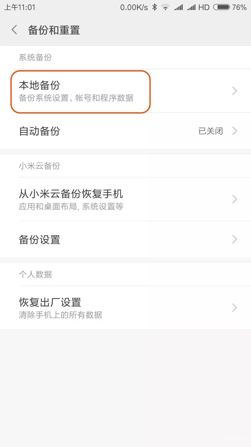本地备份能解决云服务不能备份第三方应用数据的问题。设置新备份时,系统会自动保存系统及软件中的数据。用户还可自行选择备份的数据和软件。但需注意,手机升级系统或清除数据时,本地备份也会被清除。因此,在升级前,一定要将备份文件转移到电脑上保存。