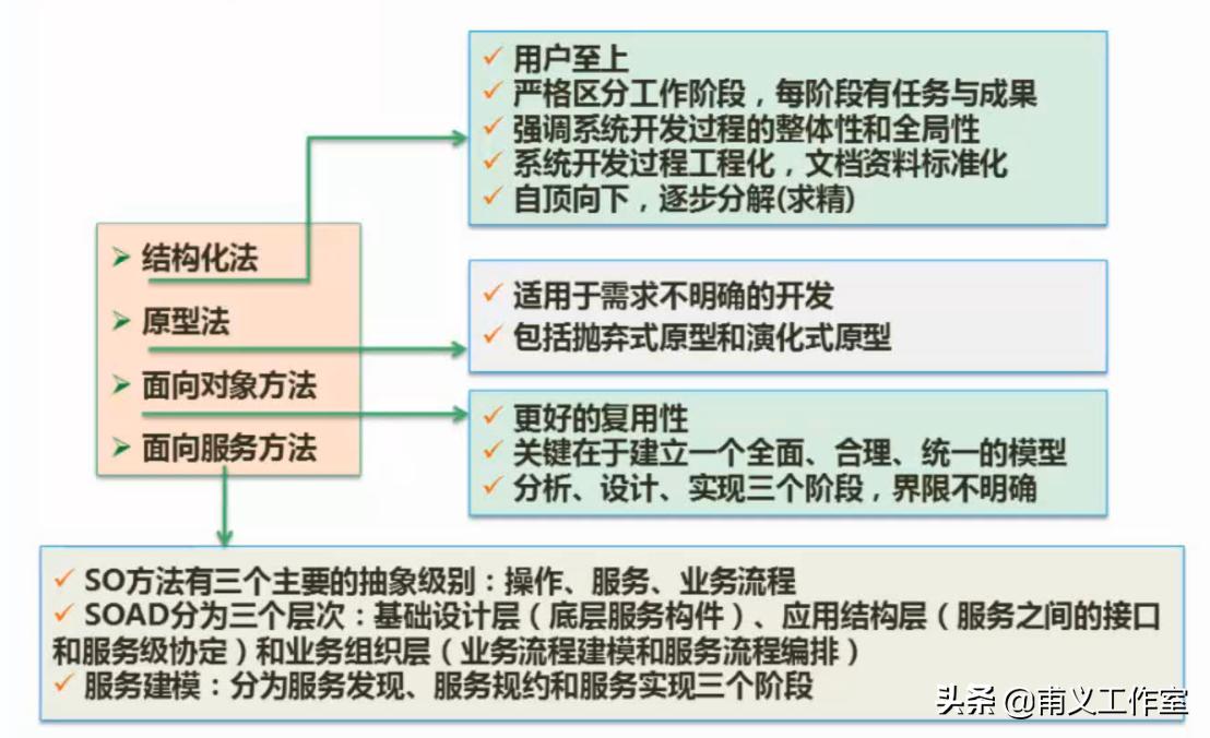 观察开发方式,可分为自上而下和自下而上的两种。自上而下是从全局到细节,而自下而上则是从细节到全局。按照性质分类,可以分为形式化与非形式化两种,而按照适用范围,又可分为全面和局部两种方法。