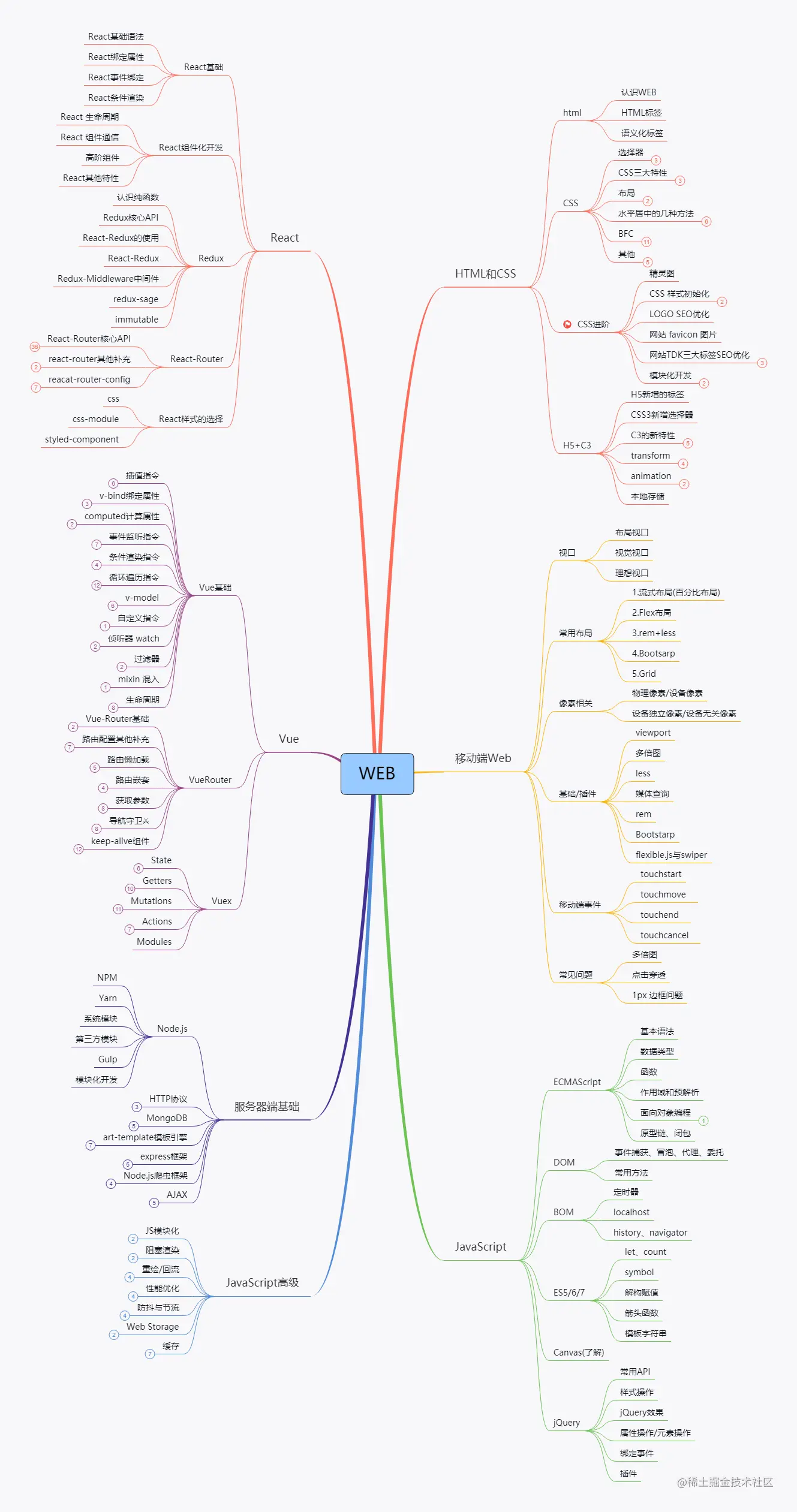 这篇文章非常适合自学前端的朋友们阅读,它能帮你大致掌握前端需要学习的技术。即便是已经掌握前端知识的朋友们,也可以借助思维导图来准备面试和复习,这样有助于知识点之间的联系,增强记忆。这些思维导图是作者结合自己的笔记整理出来的,内容详实,非常有参考价值。