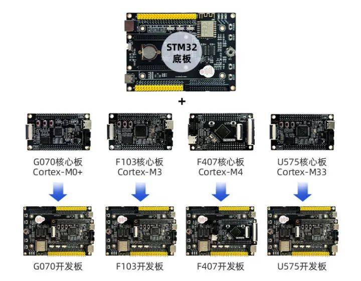 这款STM32多核开发板设计新颖,将底板与核心板分离,大大增强了其使用价值。底板兼容性极高,能够与F103、F407、U575等多种型号的核心板相匹配。在研究不同型号的STM32时,无需购买全新的开发板,只需挑选合适的核心板即可。