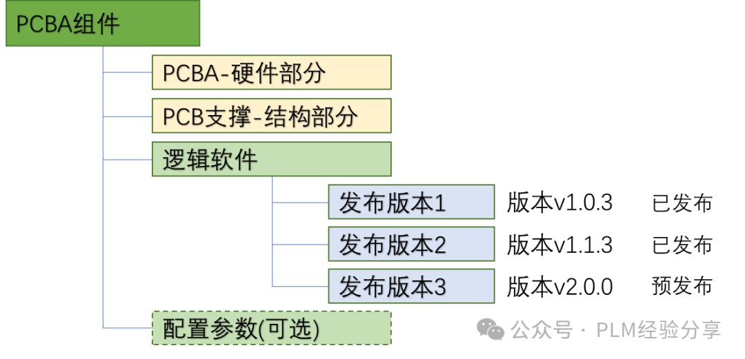 产品结构中包括软件定义,但版本管理却与之独立。这种做法使得软件与产品结构的调整得以分开进行,众多企业的应用软件和PLC程序都采纳了这种方式。然而,部分企业产品中软件数量较多,对软件的策划、开发等各个阶段的追溯和管理要求较高,旧有的模式存在一些问题。