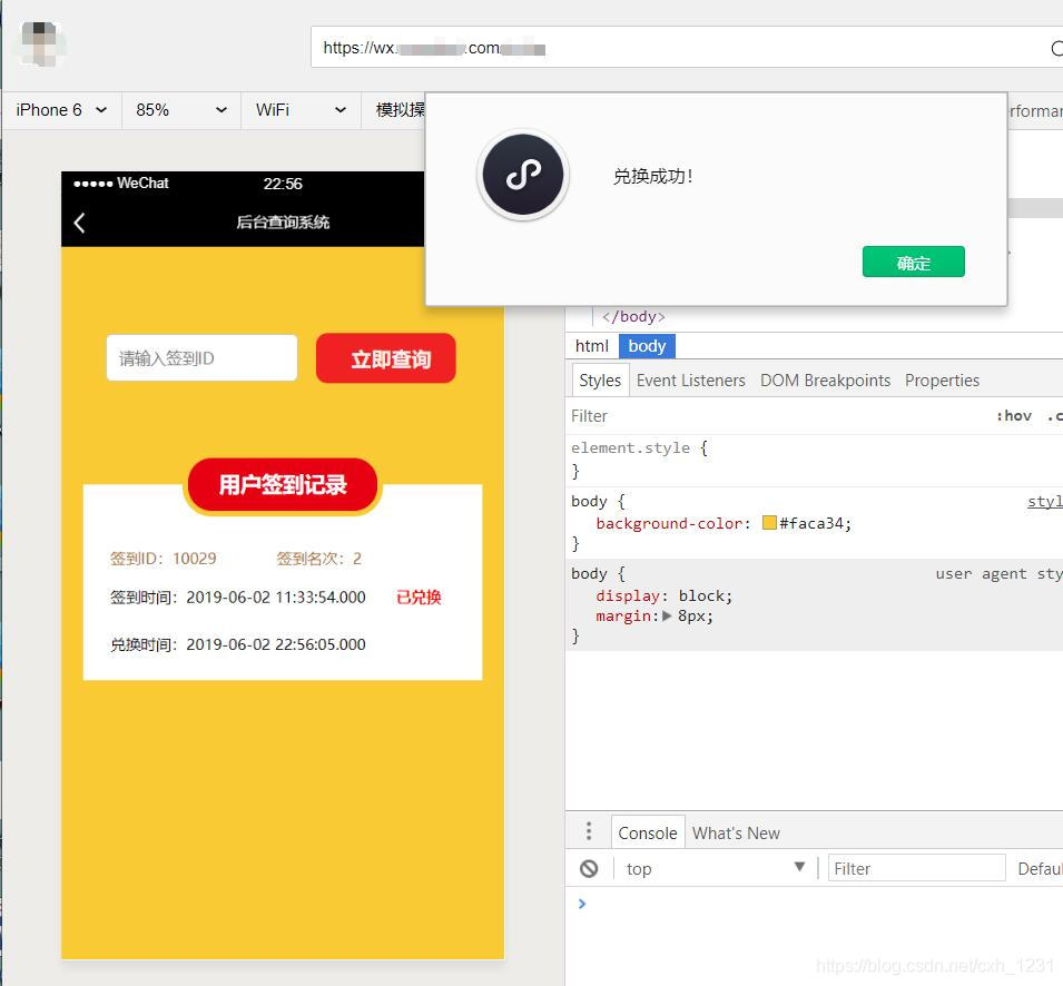用户签到信息的展示对用户的使用感受有很大影响。如果签到信息过时,系统会展示一张特别的提示图;如果信息已经兑换,也会有相应的提示图。这种直观的展示方式让用户能快速了解自己的签到信息状态,方便他们进行下一步操作。此外,在微信Web开发者工具中运行时,还会弹出一个兑换成功的提示框。