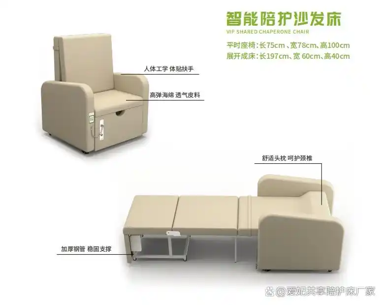 这种沙发床既可作沙发又可作床,极大地方便了医院陪护人员的工作。白天,它是一张舒适的沙发;夜晚,它又变成了一张舒适的床。用户只需通过手机APP或遥控器,就能轻松调整靠背角度,轻松找到最合适的休息姿势。