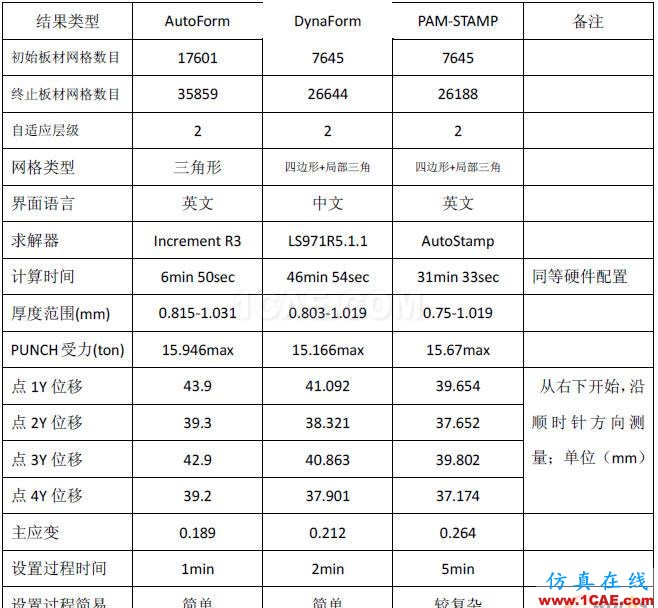 在后处理环节,这三款软件在多数结果输出方面表现相似,包括厚度、应力应变以及设备吨位预测等。不过,在操作简便性上,PAM – STAMP表现更佳,其他两款也有类似特点。使用起来越简单,用户的学习成本就越低,工作效率也能相应提升。