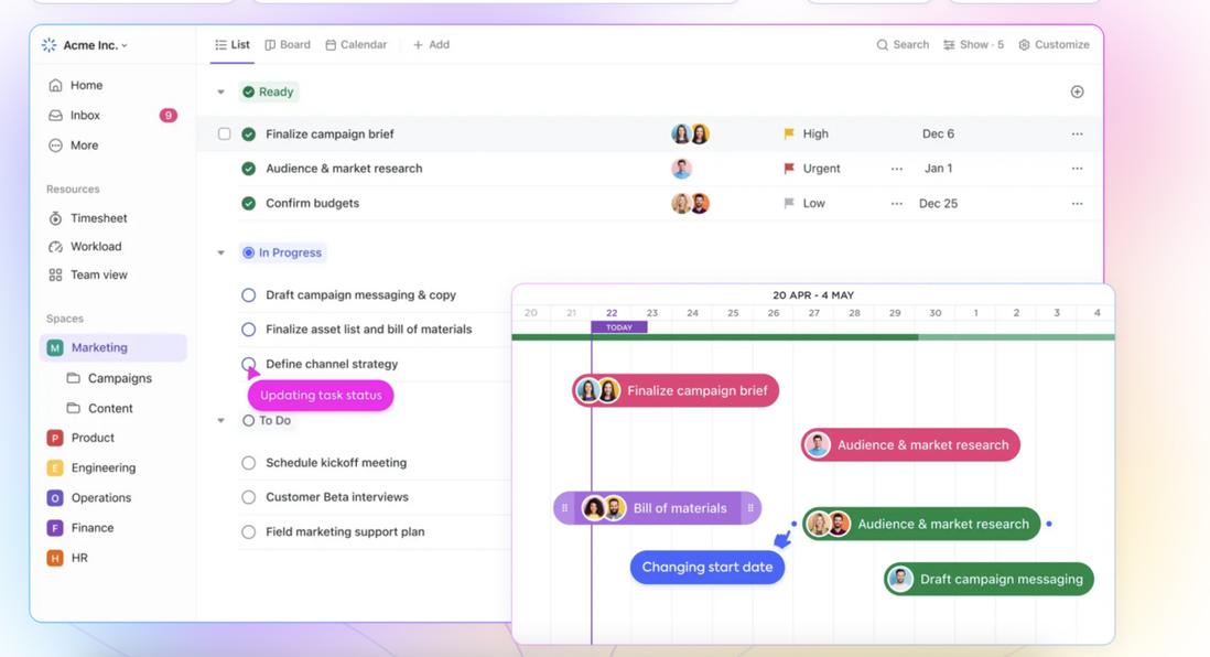 这些软件功能多样,涵盖了任务管理、时间跟踪、文档编辑、团队沟通和项目汇报等方面。它们营造了一个便于团队成员沟通、协作和项目监控的统一平台。而且,还配备了甘特图、看板等直观的视觉辅助工具。