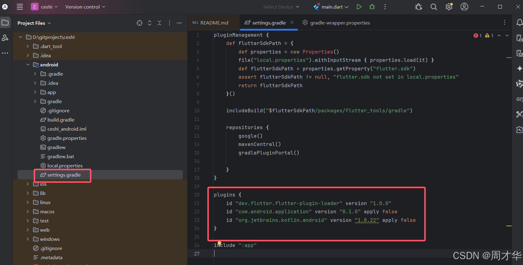 id \"dev.flutter.flutter-plugin-loader\" version \"1.0.0\"