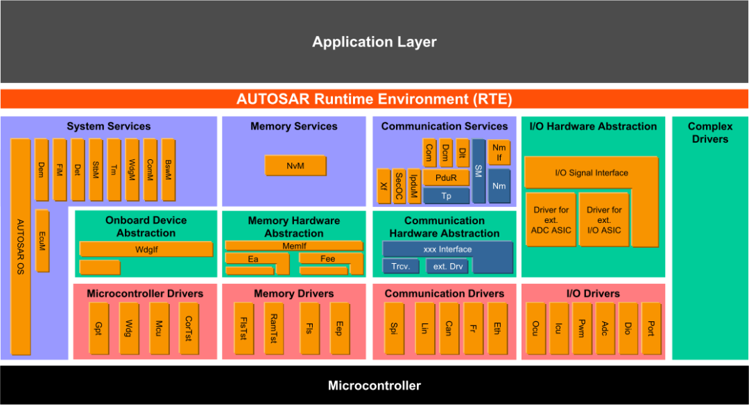 基础软件分为四个层次,分别是服务层、ECU抽象层、微控制器抽象层以及复杂驱动层。它们各自承担着不同的任务:服务层负责提供支持,ECU抽象层负责隔离硬件,微控制器抽象层负责与微控制器对接,而复杂驱动层则专注于处理特殊硬件。这些层次之间相互配合,共同保障嵌入式软件的顺畅运行。