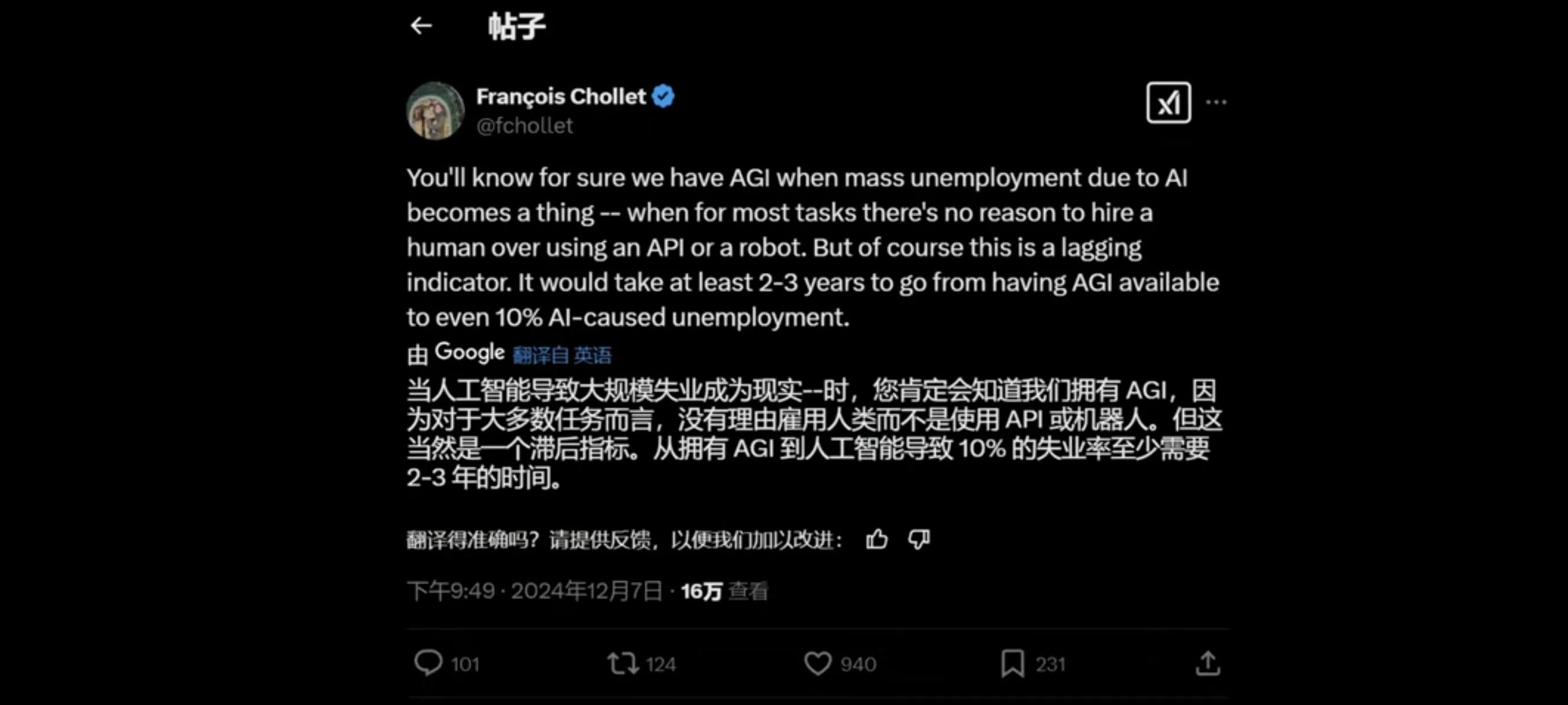 弗兰索尔觉得,人工智能可能导致大规模的失业现象,这或许意味着通用人工智能(AGI)时代的到来。众多企业为了获取最大利润,把AI当作削减开支的工具,结果让许多求职者失去了工作机会。