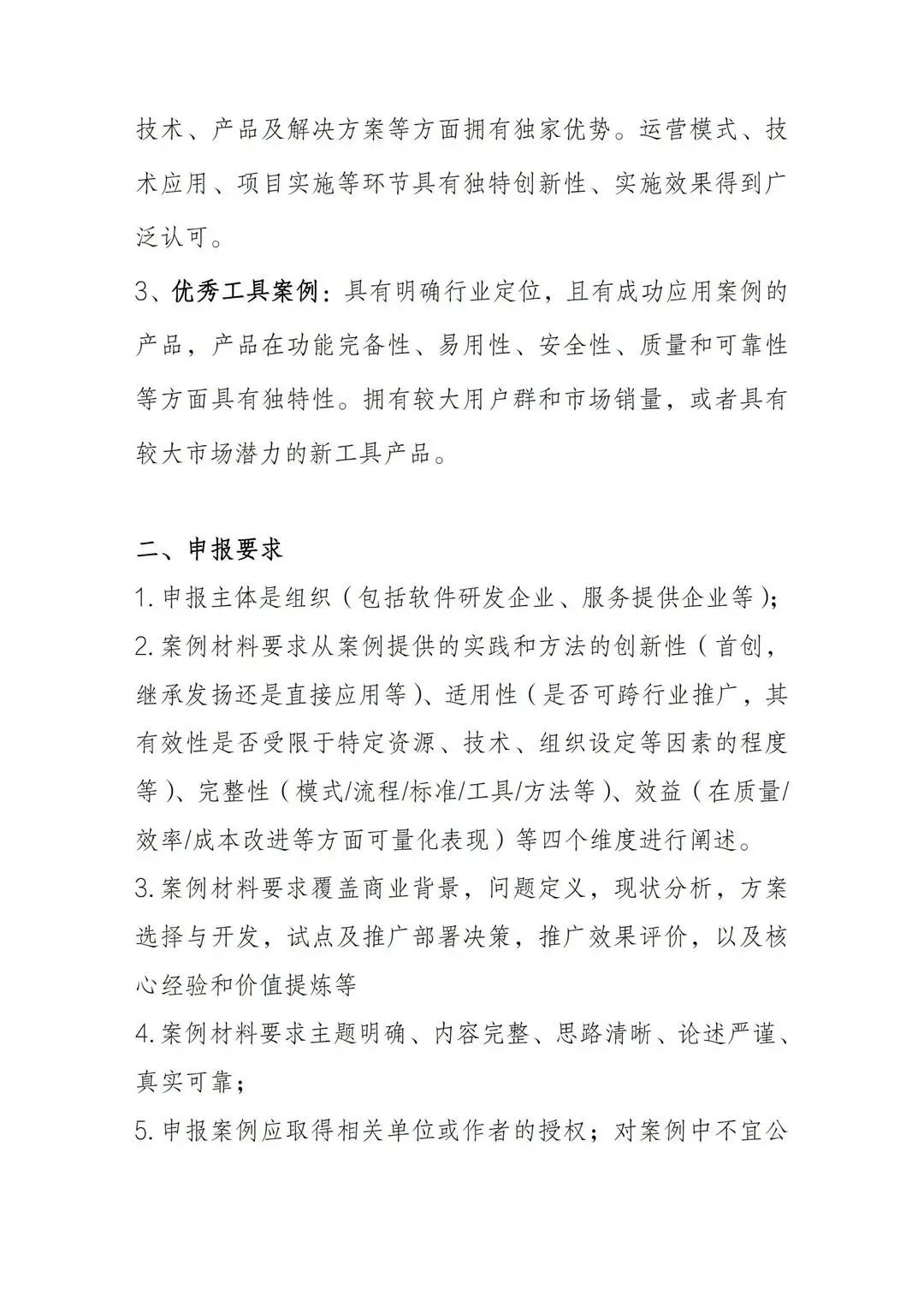 申报资格适用于各种组织,包括软件研发公司和服务供应公司等。作为创新的推动者,这些企业在软件开发领域拥有丰富的经验和成就,是案例申报的理想人选。其中一些企业专注于特定领域,拥有独特的经验,此次征集活动将为他们提供一个分享的平台。无论企业规模大小,均有资格参与,以发现更多优秀的实践案例。即便是小型企业的创新模式,也可能带来重大价值,为行业带来新的生机。这一设定确保能广泛征集各类优秀案例。