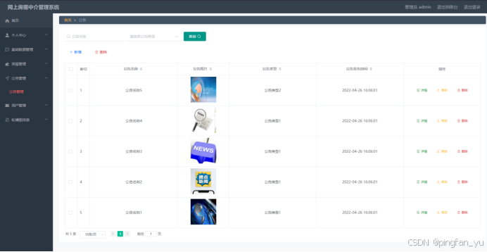 管理员享有更广泛的权限。他们能对用户资料进行编辑,保证资料的正确与安全。同时,他们有权发布新闻,让用户能迅速掌握行业最新消息和平台政策。另外,管理员还能对房源和公告等资讯进行全方位的管理。