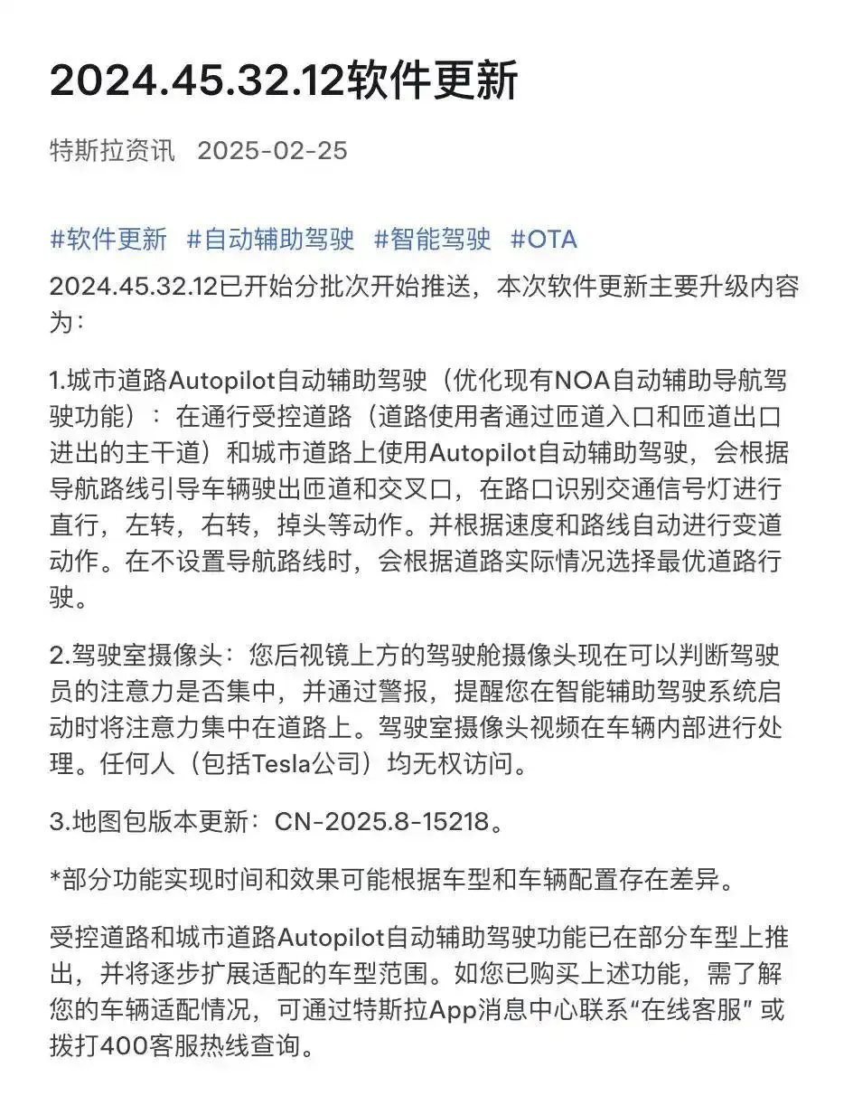 2月25日,特斯拉向我国消费者发布了新的软件升级方案。方案中新增了城市道路自动驾驶辅助功能。这一举措旨在增强用户的驾驶感受。同时,这也体现了公司在自动驾驶技术领域的不断进步。