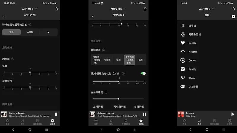 若选用该品牌的被动音箱,操作会更简便,因为其DSP的优化设置都集成在应用程序中。只需在app的“扬声器类型”里挑选相应的型号,就能享受到更佳的音质。即便音箱并非该品牌,挑选其他选项,尽管DEAP功能关闭,也不会妨碍到扩大机的基本使用。