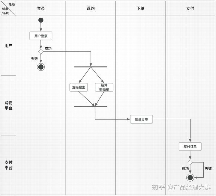 泳道图是活动图的一种,它依据对象或系统来区分活动区域。相较于顺序图,泳道图更强调用例活动间的约束和控制流程,目的是展示系统功能的操作步骤。以物流系统为例,它能清晰展示订单处理、仓储管理、运输配送等环节的操作流程,同时明确各部门或角色的职责。