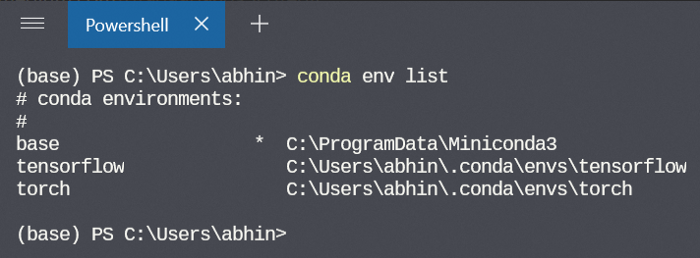 > python —versionPython3.8.3> conda —versionconda4.8.4