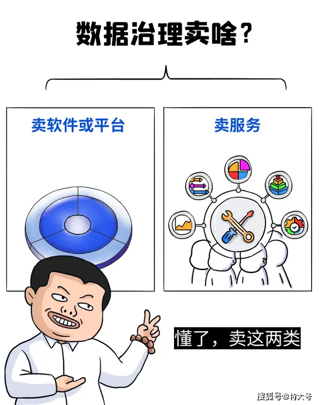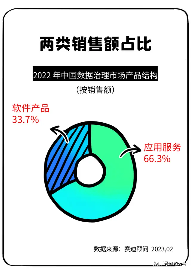 数据治理在产品应用上主要分为两大类:一类是软件或平台,另一类是服务。IDC将“数字政府数据治理市场”这一概念,定义了包括上述两类产品在内。据赛迪顾问的报告,在中国数据治理市场整体中,这两类产品的销售额占有一定比例。而产品的多样性也影响着企业的竞争路径和成长策略。