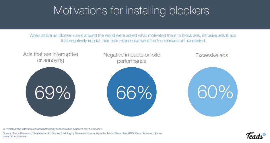 用户的心态颇为复杂。有些人乐意放弃广告拦截功能,以支持他们喜欢的网站;然而,也有人会选择转而访问其他网站。根据Teads的调查,如果用户有机会跳过广告、稍后关闭它们或关闭声音,且广告内容能吸引他们的兴趣,那么他们安装广告拦截插件的可能性就会降低。