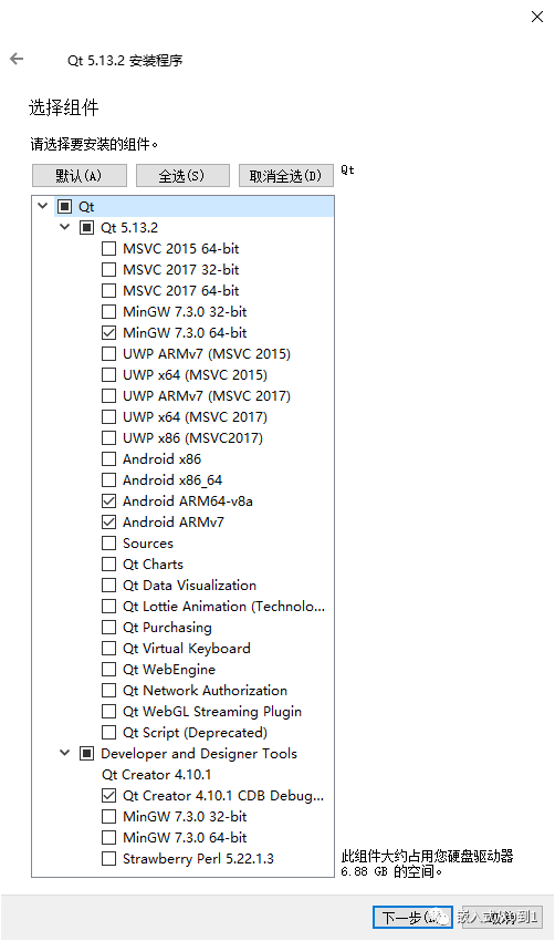 请先下载一个叫做qt-x86-5.13.2.exe的文件。您可以通过提供的链接完成下载。下载成功后,双击该文件打开安装界面。在安装过程中,您需要输入Qt账号。若您选择不输入,可在无网络环境下进行安装。我之前就是直接在无网络状态下,选择了默认安装。电脑空间充足时,推荐您挑选安装包中的全部内容,然后直接点击“下一步”,直到安装结束。