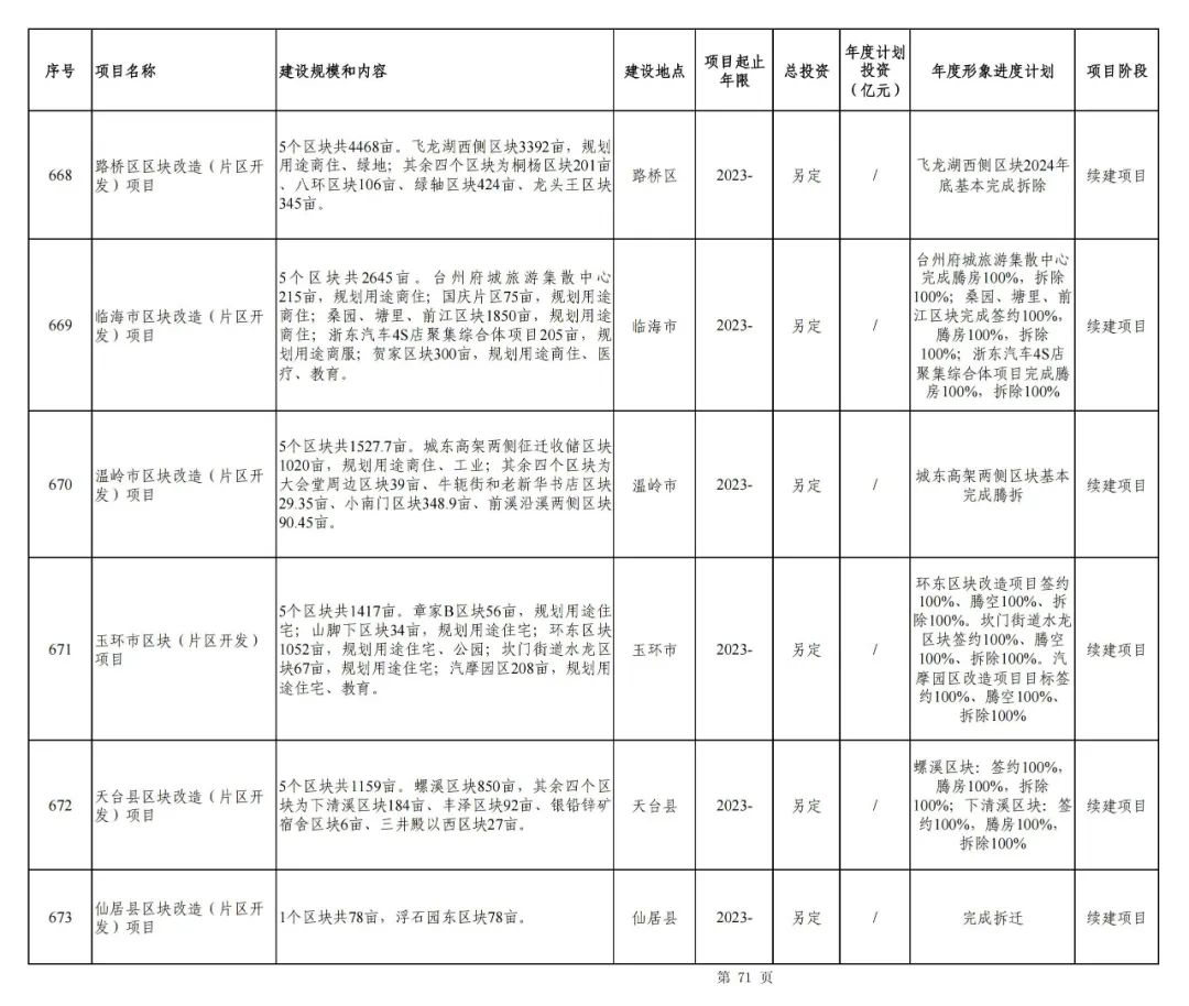 方山路北边的区域被纳入整体开发计划,必须确保签约、房屋腾空、拆除工作各达到100%。飞龙湖西边的区域预计到2024年底将基本完成拆除工作,此举将为项目的进一步建设提供必要的空间。台州府城的旅游集散中心同样需要完成房屋腾空和拆除,以促进旅游设施的升级。城东高架路两侧的区域拆除工作也基本完成,这将有助于推动交通沿线地区的综合发展。