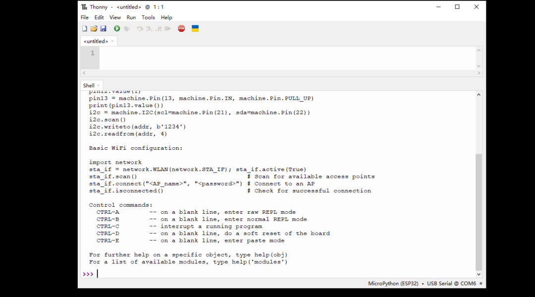启动程序,调整界面配置,挑选恰当的解释器和端口,完成确认步骤后查看资料,输入“帮助”指令,esp32的相关信息随即呈现,这说明软件安装大体就绪。