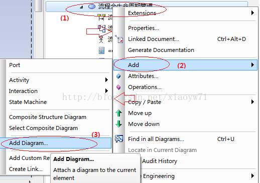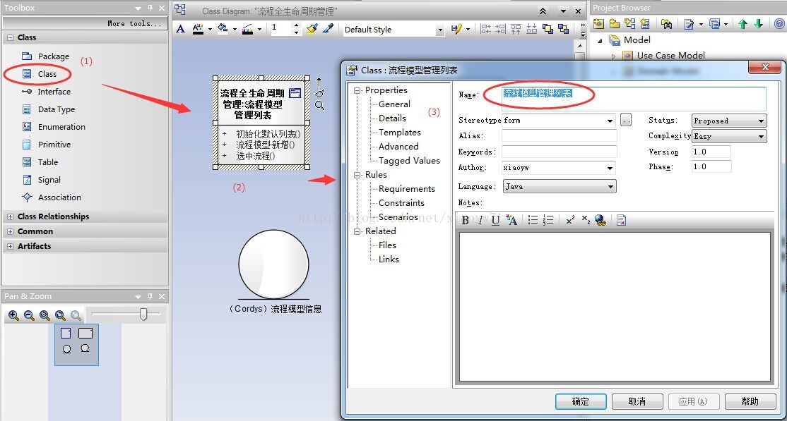 在“流程全生命周期管理”的案例中,需构建类模型图与时序图。挑选合适的类名和构造方式,把相关对象拖至图面以形成所需效果。同时,可调用类中预定义的方法。通过双击交互引用框,即可进入子序列图来展示更详细的内容。此外,还可以通过交互引用框将子序列图加入到当前图中。