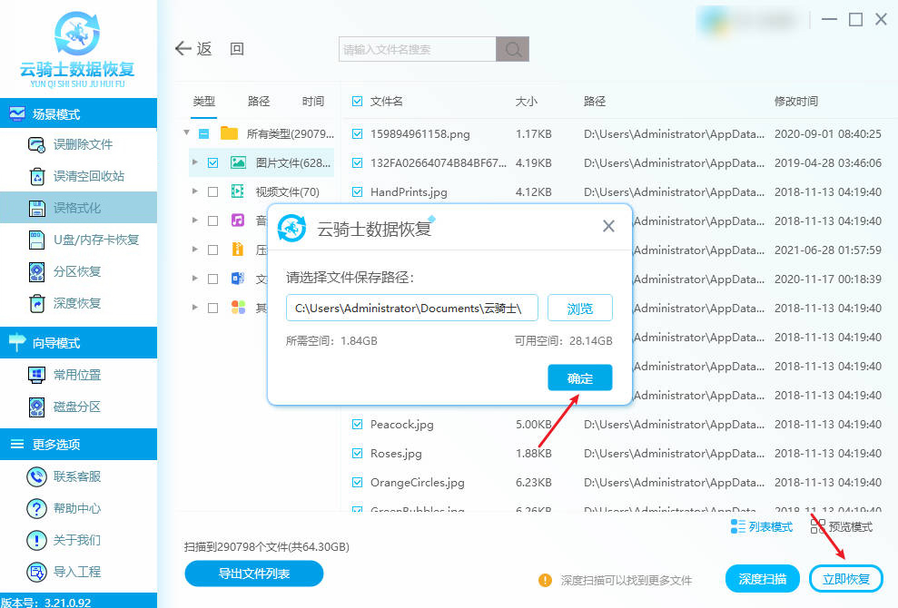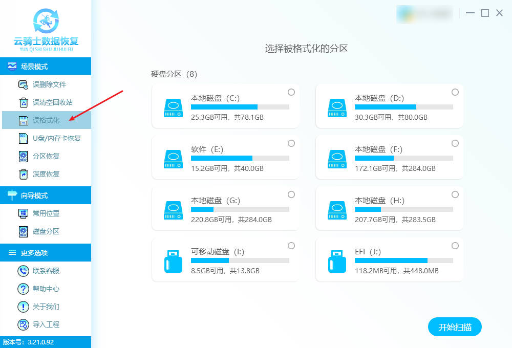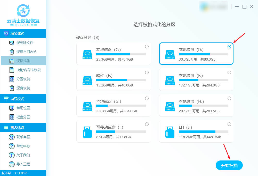 硬盘不小心被清除了,别慌。暂时别使用这块硬盘,防止新资料覆盖了旧资料。如果可以的话,试试数据恢复工具,例如云骑士数据恢复软件,它能够查找未被覆盖的部分来恢复资料。先去官网下载并安装到其他分区,接着打开软件,选择“误格式化”模式,对已清除的分区进行扫描,找到目标文件,勾选后保存到其他地方。