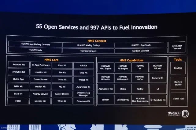华为的HMS并不着重打造与谷歌相抗衡的“全家桶”,而是致力于提供HMS Core服务API,服务于海外的应用开发者。在未涉及的领域,华为选择与第三方合作,将这些服务整合进HMS Core。例如,在特定功能服务方面,华为与专业第三方展开合作,以此增强HMS Core的功能广度。