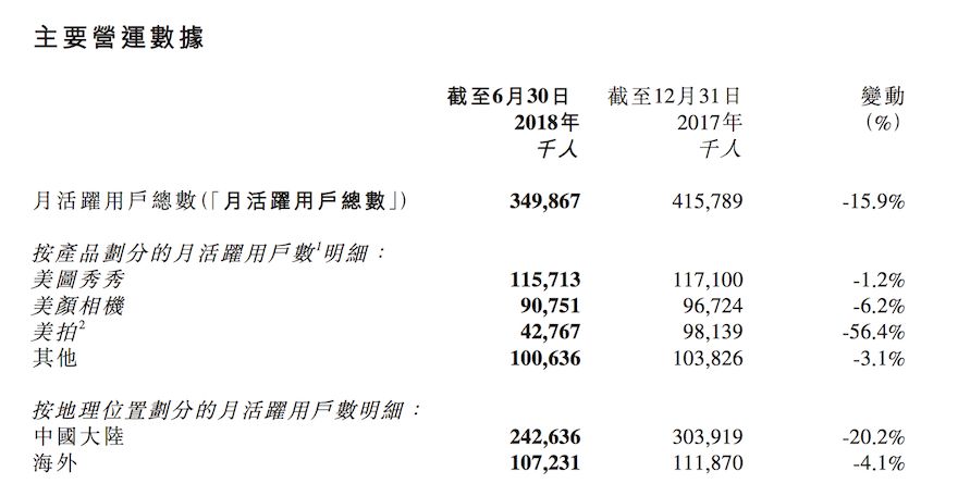 美图历经波折,最终投身社交领域。然而,其财务报告揭示了令人不安的趋势:核心产品的月度活跃用户数量持续减少。2018年上半年,月度活跃用户总数降至3.5亿,较2017年同期下降了6592万。进一步分析,美图秀秀和美颜相机的月度活跃用户分别减少了1.2%和6.2%。此外,市场上还有众多竞争对手在争夺美图的用户。