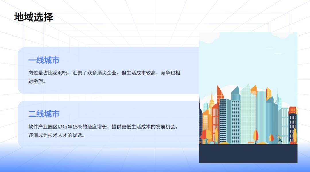 软件工程师有多种职业道路可选。他们可以投身于银行的信息技术部门,或者在政府的信息化岗位上任职,比如成为网信办公务员。这些职位通常比较稳定。职业发展路径明确,从初级程序员起步,有机会逐步提升至架构师,甚至成为技术总监。而且,年薪有望突破五十万元。一线城市如深圳和北京提供了较多的就业岗位,其岗位数量在全国占比超过40%。与此同时,成都、西安等二线城市的软件产业园区发展势头强劲,增长速度十分迅猛。这些园区每年都以15%的速度稳步上升。