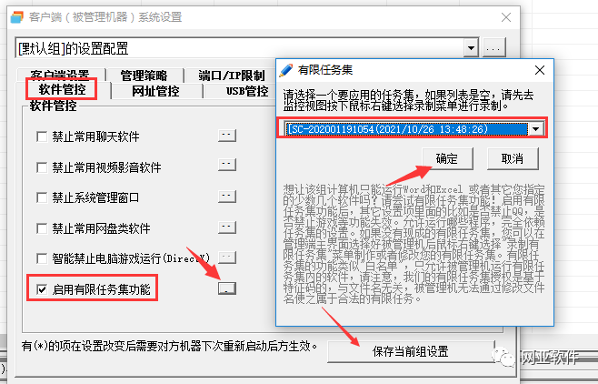 管理软件负责对员工使用软件进行限制。管理员需从监控列表中挑选设备,接着用鼠标右键点击,选择开始录制任务集。之后,客户端可以运行被批准的应用程序。完成录制后,管理员在管理界面激活任务集,员工便只能使用那些管理员授权的软件。